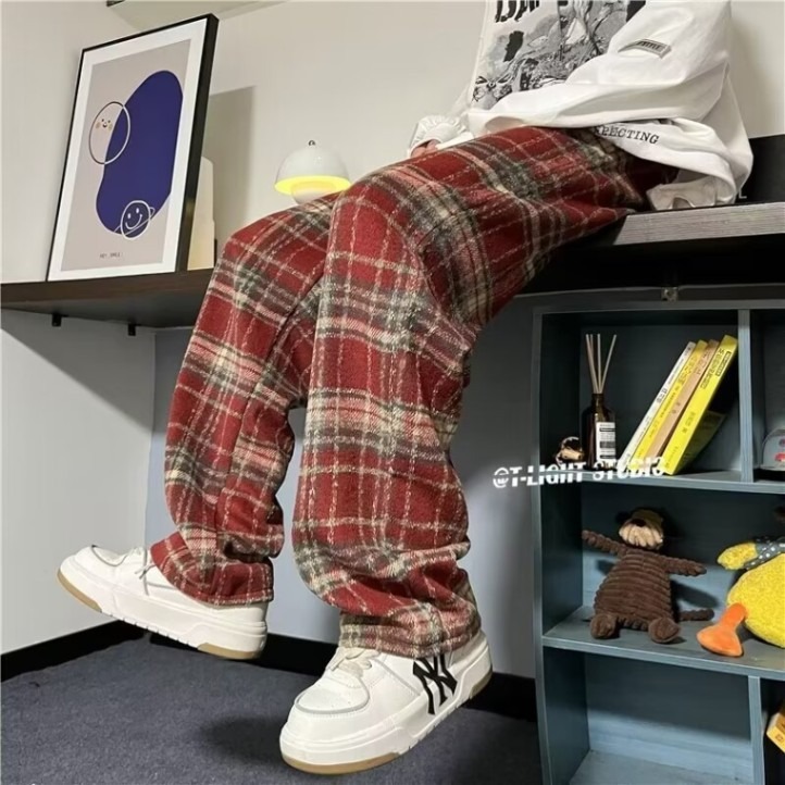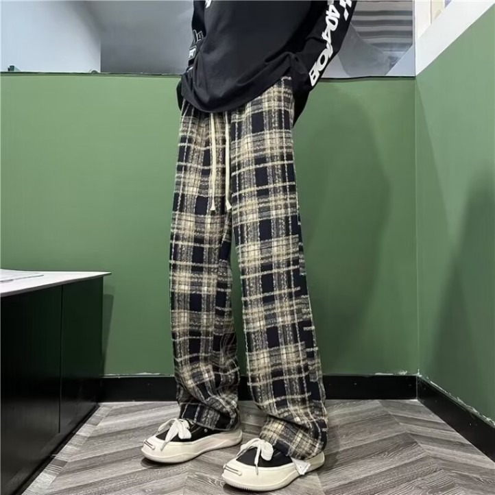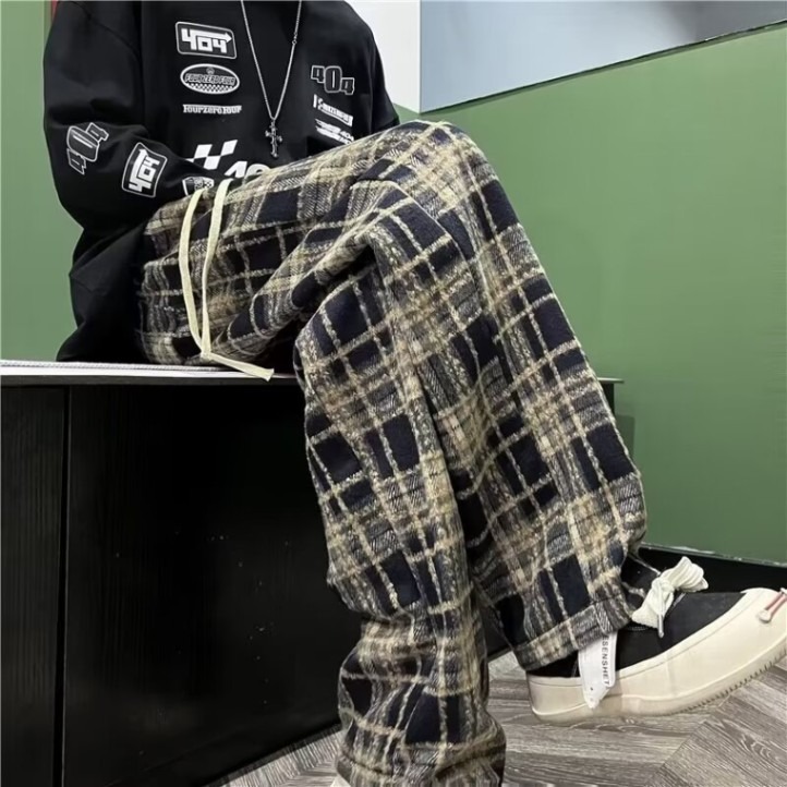 高街潮牌格子休闲裤男女秋冬加厚vibe风美式情侣裤潮牌痞帅阔腿裤